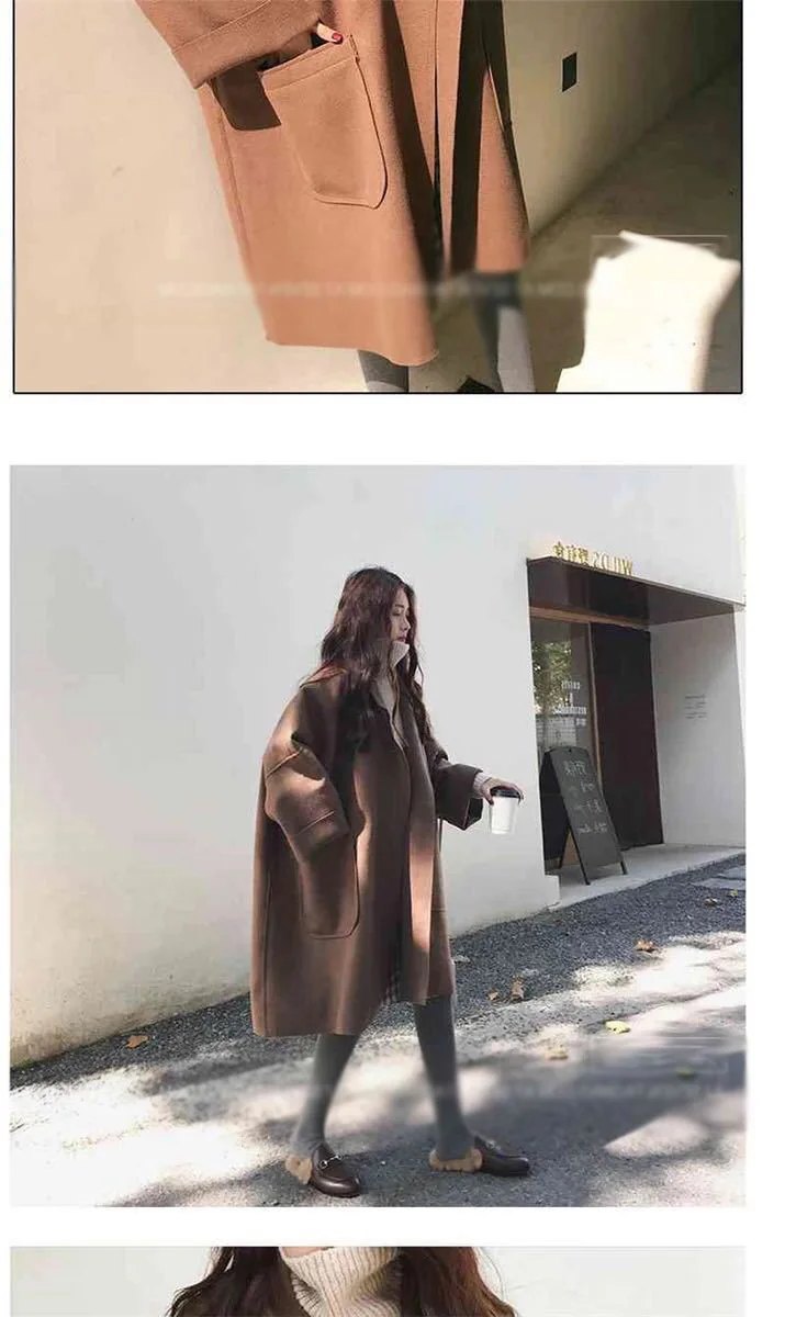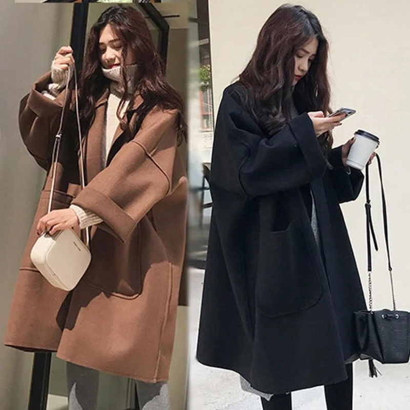 Женское длинное кашемировое пальто, Свободное пальто из искусственной шерсти, верхняя одежда в Корейском стиле на осень и зиму, 2022