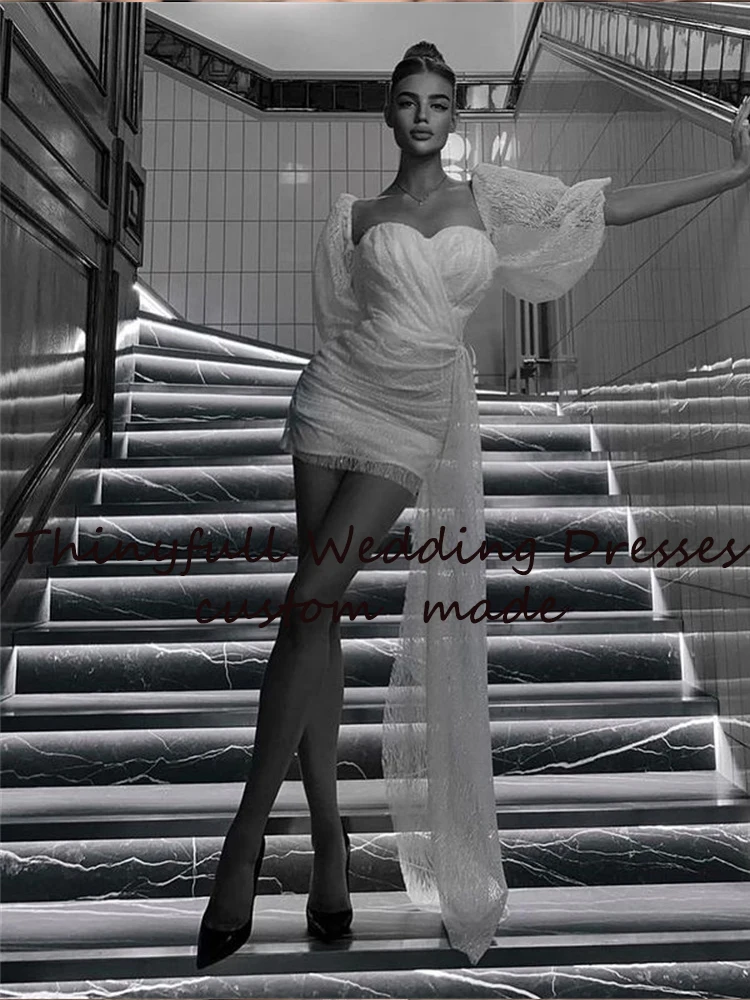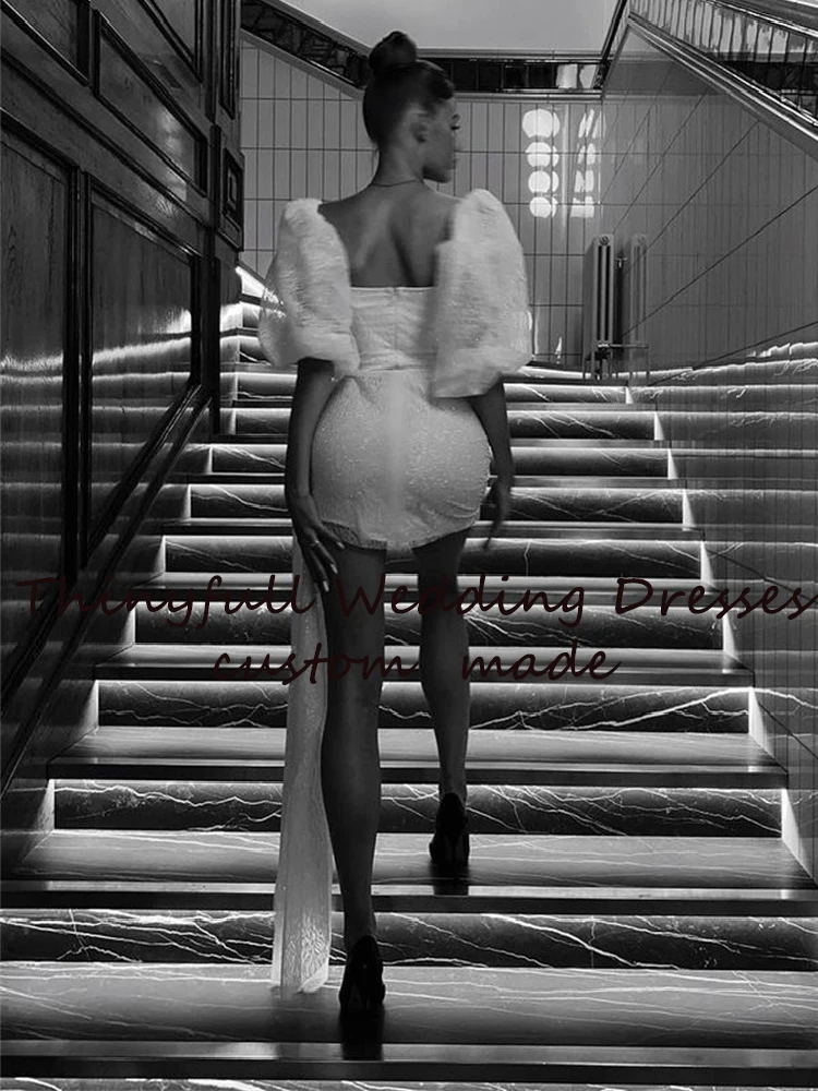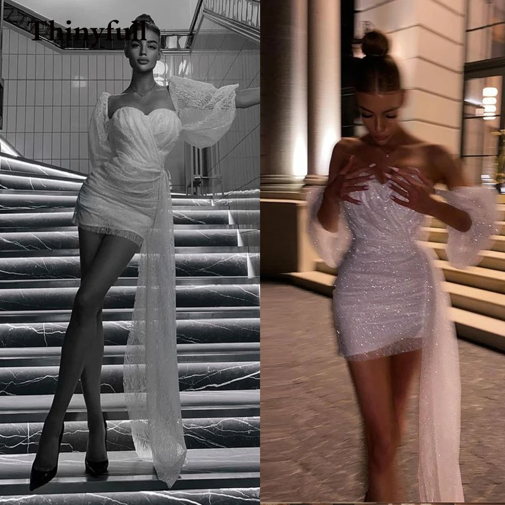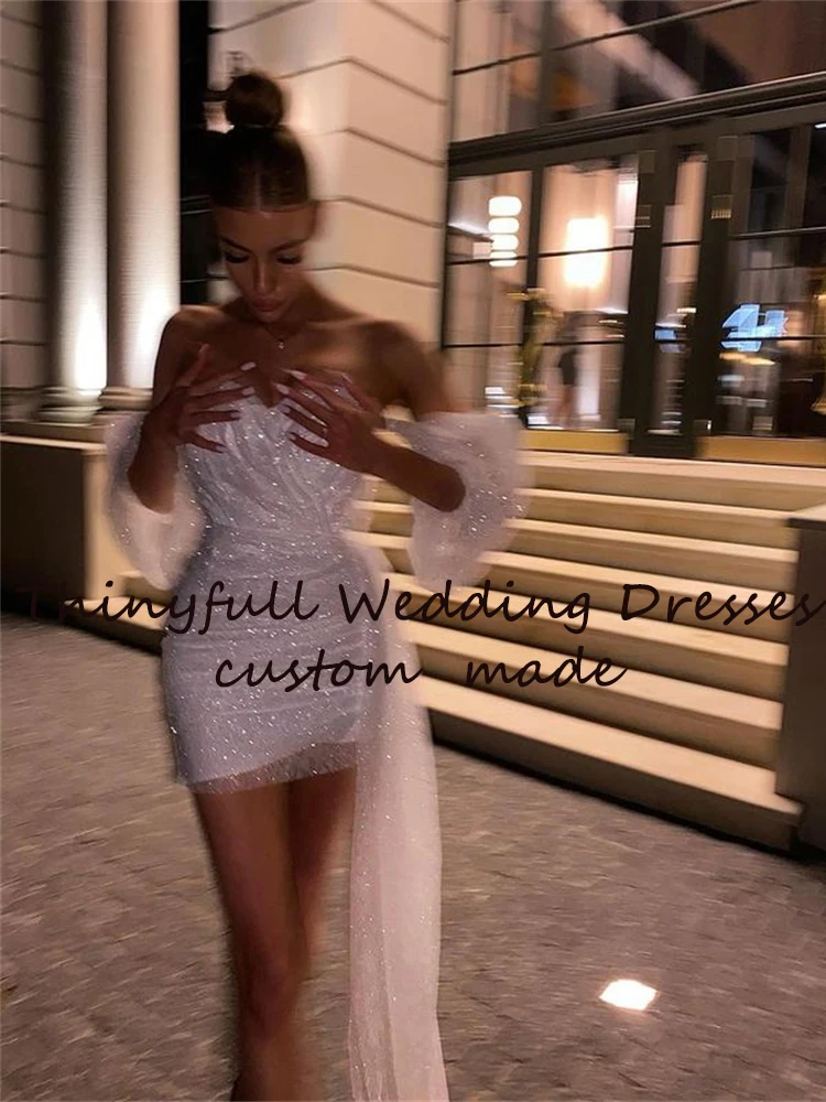 Thinyfull пикантные Короткие свадебные платья с блестками 2022 милое вечернее клубвечерние платье с коротким рукавом для вечеринки платья принцессы