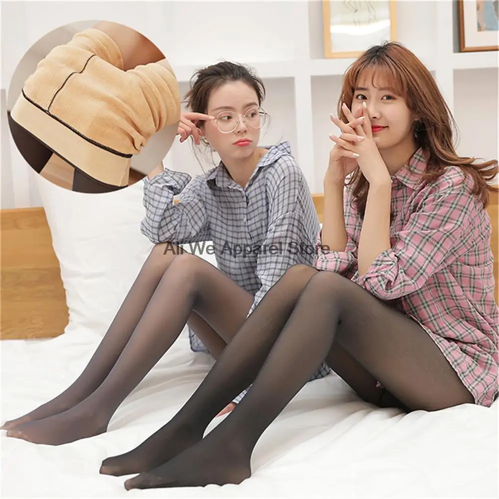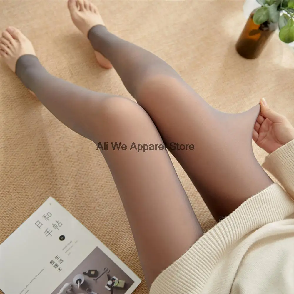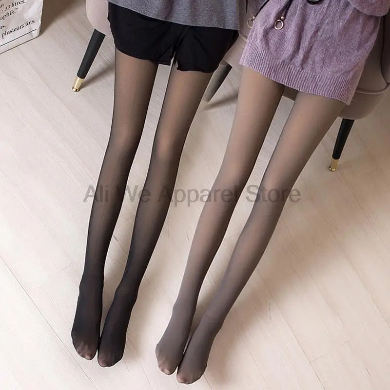 Пикантные женские изолированные колготки, черные полупрозрачные зимние Чулки с имитацией ног, теплые зимние колготки, женские эластичные флисовые Колготки