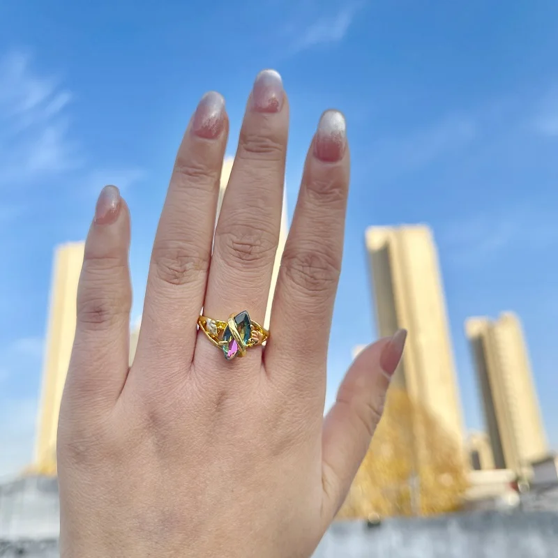 Трехцветные позолоченные кольца с белым Цирконом маркиза для женщин...