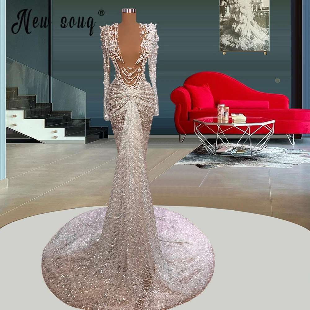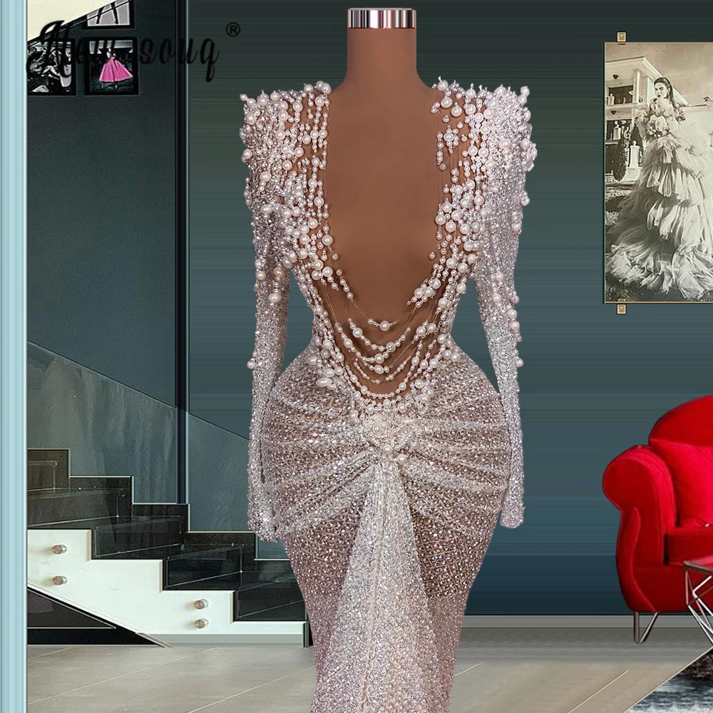 Женское вечернее платье с юбкой годе, длинное платье с жемчугом и бусинами в арабском стиле, сексуальное платье для выпускного вечера, свадебные платья