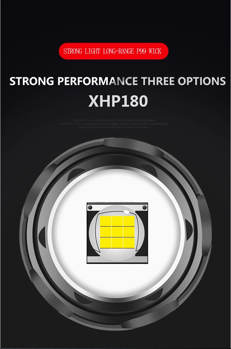 Суперъяркий светодиодный фонарик XHP180, 2,000,000лм, масштабируемый фонарик, фонарик с аккумулятором 18650 или 26650, функция внешнего аккумулятора