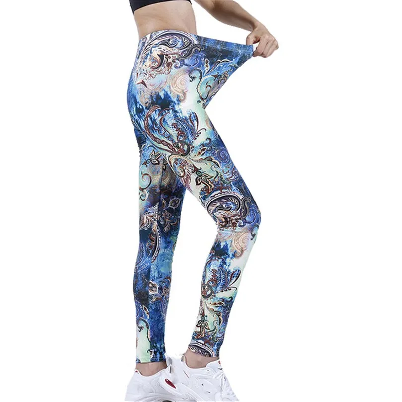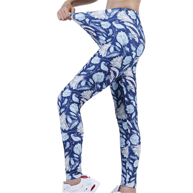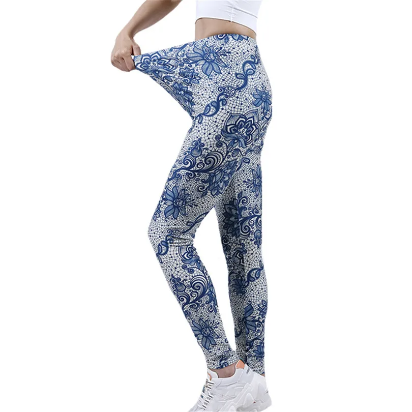 Женские леггинсы YRRETY с высокой талией, спортивные, с эффектом пуш-ап, для фитнеса, с градиентом, с синими цветами, одежда для спортзала, тренировок, штаны, Прямая поставка