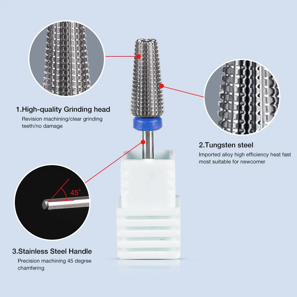 Безопасные конические карбидные сверла для ногтей 5 в 1, фрезерные головки с режущими сверлами, карбидные аксессуары для магнитных гелевых ногтей