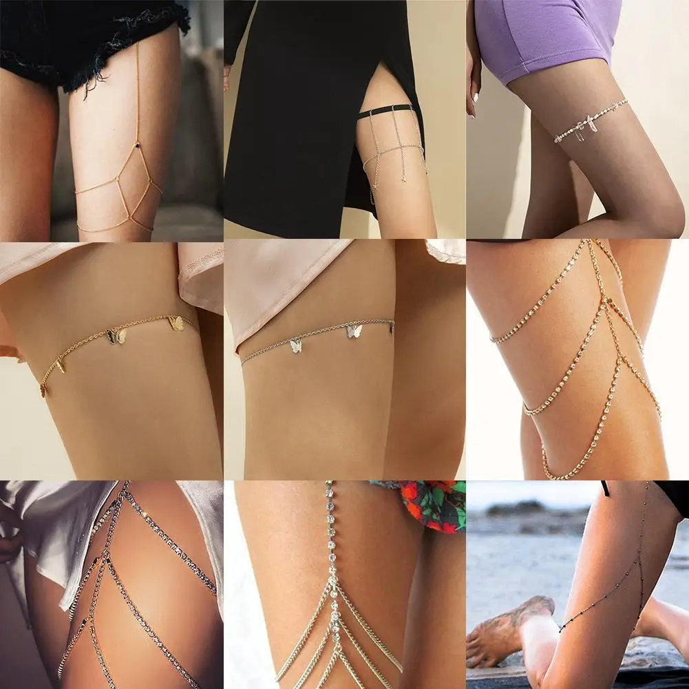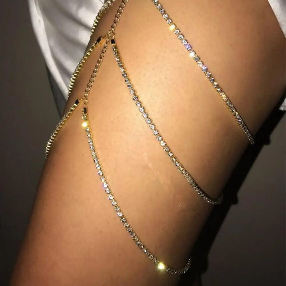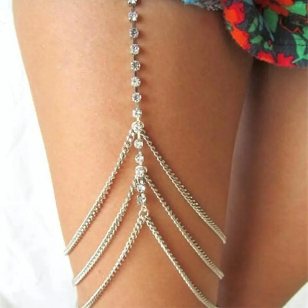 Цепочка для ног вспышка Стразы бедра бриллиант блестящие сексуальные ювелирные изделия для тела Многослойные однорядные женские пляжные жгуты для женщин