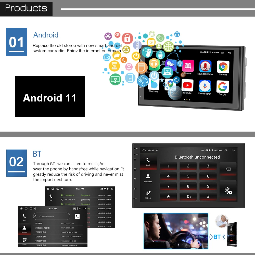 Особенности1. Обновленная двойная система зеркальной связи: IOS/Android зеркальной связиIOS one-way :IOS поддерживает мобильный телефон с односторонней проекцией на машинуAndroid двусторонний: Android поддерживает мобильный телефон двустороннее соединение2. Встроенный GPS Прием: пользователи могут приобрести напрямую из play store для автономной навигации. С Wi-Fi подключен, Google Maps может использоваться идеально, вы можете пойти куда угодно и никогда не потеряться снова!3. Встроенный WIFI: подключение к WIFI, и вы найдете новый мир, самый удобный-это онлайн-карта.4. Камера заднего вида: необходимо выбрать камеру, автомобиль подключен к обратной передаче для автоматического переключения (требуется дополнительно)5. Управление рулевым колесом: через него вы можете управлять функциями, которые вам нужны, с помощью рулевого колеса, более удобно6. Встроенный Bluetooth 4,0 с A2DP/Hands Free/Телефонная книгаПоддержка Bluetooth громкой связиМузыкальный плеер BluetoothАвтозагрузка телефонных книг7,7 ''1024*600 супер высокой четкости цифровой экран8. Запись вождения: вы можете выбрать регистратор, и автомобиль имеет воспроизведение, доказательства могут быть сохранены9. Двойной вход USB адаптера10. Встроенный FM с 18 предустановленными станциями11. Поддержка файлового менеджера: поддержка загрузки, установки и удаления более тысячи приложений android12. Поддержка нескольких языков: поддержка языков, до 70 национальных языков13. Вы можете наслаждаться музыкой с мобильного телефона без каких-либо кабелей, а также поддержка USB connetion.14. Fm-радио: онлайн-музыка, вы можете передавать музыку на автомобильный стерео FM, чтобы наслаждаться оригинальным стереозвуком автомобиля15. Высокое разрешение 1080P: полноёмный сенсорный экран для удобства эксплуатации, хорошо разработанный пользовательский интерфейс только для автомобиляОсобенностиСистема: Android 11Набор микросхем: 8227LРазмер экрана: 7''Память: 1G RAM + 16G ROM / 2G RAM + 32G ROM (опционально)Разрешение экрана: 1024*600Зеркальная ссылка: Android/IOSРадиочип: MTKВыходная мощность: 4*45 ВтРабочая температура:-40 ℃-80 ℃Функция управления рулем: ПоддержкаВерсия Bluetooth: 4,0Чип усилителя мощности: AC7388Радио диапазон: FM/RDSВидеовыход: ПоддержкаРеверсивный Вход: поддержка 1080PКарты: приложение для автономной карты, вам нужно подключиться к интернету для загрузки данных в автономном режимеWIFI: поддержкаВнешний микрофон: ПоддержкаUSB: двойной USB интерфейсФормат аудио: APE/FLAC/WAV/MP3/WMA и т. Д.Формат видео: MKV/RMVB/AVI/MP4/MDV и т. Д.Формат изображения: PNG/JPEG/JPG/GIF/WBMP/BNP и т. Д.Заводское ключевое слово: 1234Язык: китайский/английский/французский/итальянский/Корейский/японский/арабский/испанский/португальский/русский/Турецкий/Вьетнамский/Иврит/Польский/немецкийТовар входит в комплект1 х Автомобильный MP5 плеер1 x Антенна GPS1 х электропроводка2 usb-адаптера1 х RCA входной и выходной провод1 x кулачковый провод2 x монтажный кронштейнЧасто задаваемые вопросы:1. Почему нельзя включить автомобильное радио?1,1 пожалуйста, проверьте напряжение автомобильного радио: 12 В1,2 когда вы тестируете это автомобильное радио, вы можете комбинировать красные и желтые провода и подключить их к положительной стороне источника питания. Черная линия к отрицательному источнику питания.1,3 замена того же типа страховки для проверки автомобильного радио.Примечание: Пожалуйста, используйте наши кабели питания для подключения нашего автомобильного радио, 
