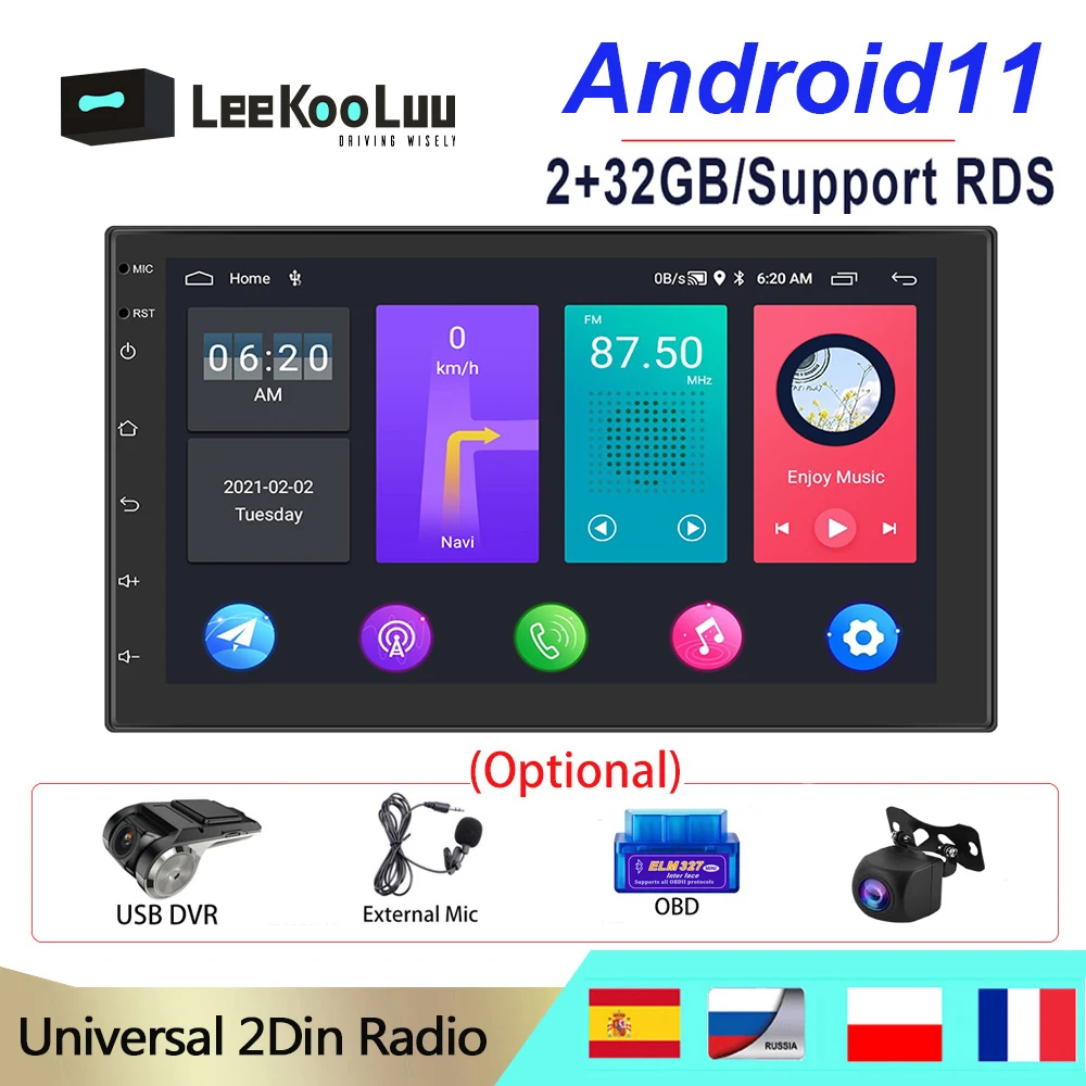 LeeKooLuu 2 Din Android 11 автомобильное радио GPS навигация 7 дюймов Авторадио 2Din стерео Мультимедийный плеер для VW Nissan Kia Toyota Ford
