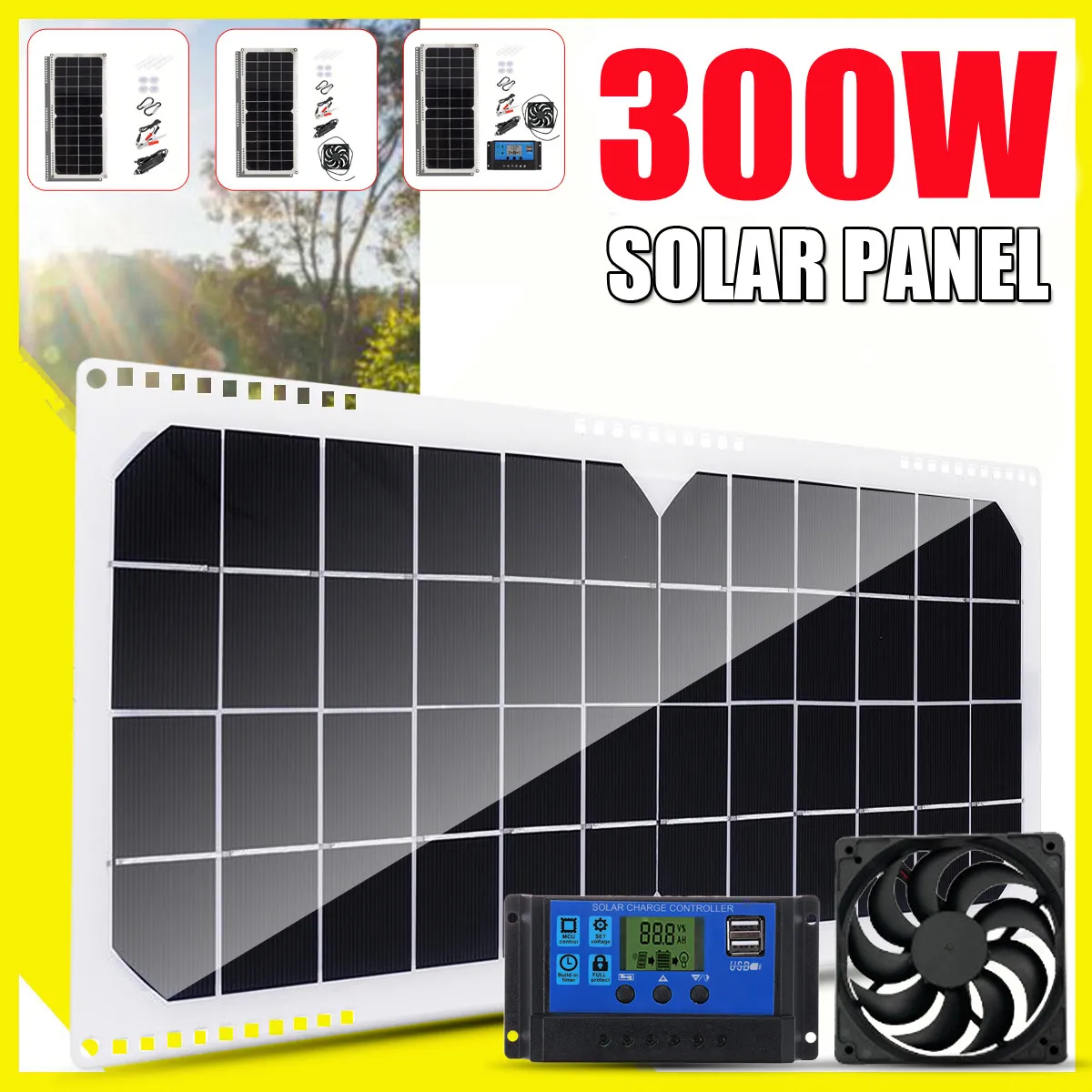 Солнечная панель 300 Вт, солнечные батареи А, модуль контроллера солнечной батареи для автомобиля, RV, дома, на крыше, фургона, для кемпинга, 12 В, солнечная батарея с вытяжным вентилятором