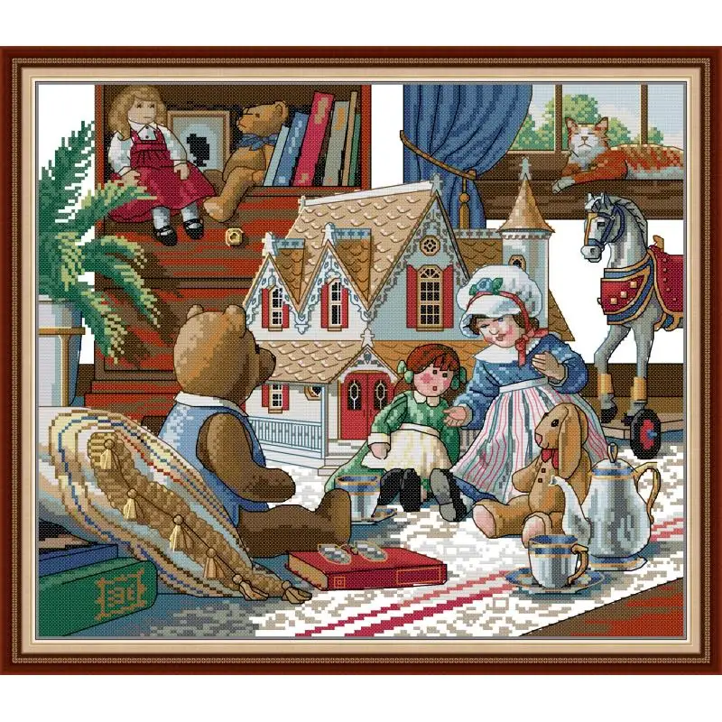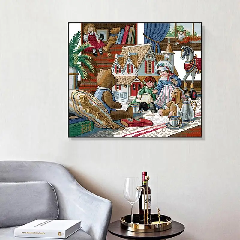 Набор для вышивки крестиком из мультфильма "Кукла", набор для рукоделия Aida 14CT 11CT, холщовая ткань с принтом, рукоделие, декор для детской комнаты