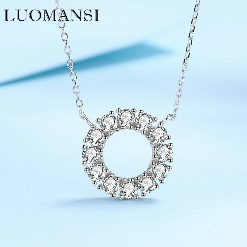 Luomansi 1.2CT D цветной Муассанит, круглый кулон, ожерелье для женщин 100%-S925, серебряные ювелирные изделия, подарок на свадьбу, годовщину вечерние ринку