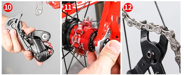 Примечание:Этот маховик совместим с 7-10 скоростным кассетным маховиком, пожалуйста, выберите 7-10 цепь для установки.Навыки установки: угол между цепным прижимом и нижней рамой вилочного погрузчика меньше или равен 45 градусам, чтобы максимизировать силу натяжения, чтобы гарантировать, что маховик не соскальзывает шестерню для нормальной работы.
