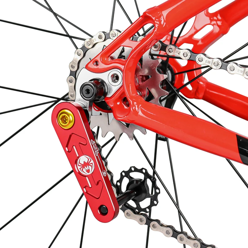 Позволяет использовать односкоростные шестерни на велосипеде. Натяжитель цепи устанавливается непосредственно на вашей вешалке с переключением, чтобы преобразовать любой скоростной велосипед в односкоростной для использования на стойке, чтобы обеспечить простой, эффективный и Регулируемый Способ натяжения односкоростных систем.