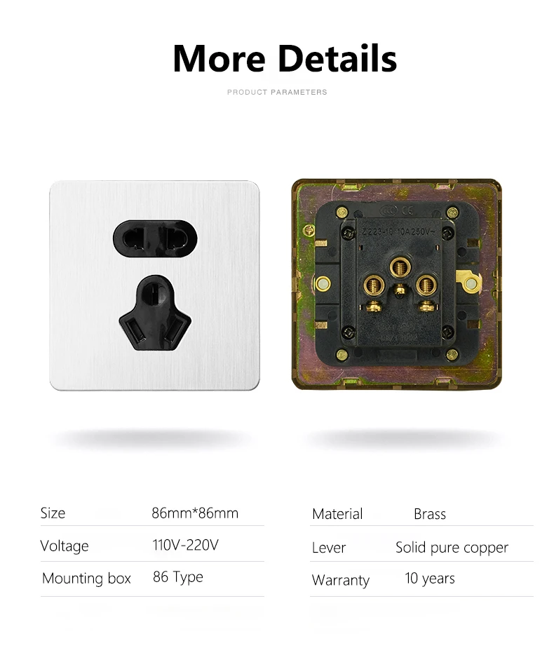 Электрическая розетка 110-250 В, С переключателем, из нержавеющей с...