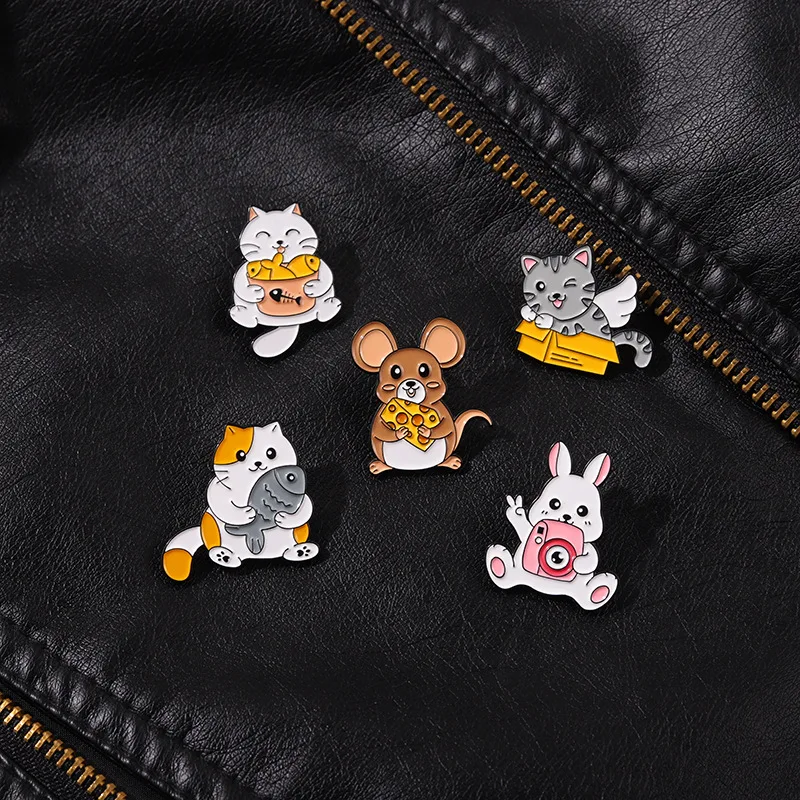 Мультяшные животные эмалевые заколки кошка рыба мышь сыр кролик сим...
