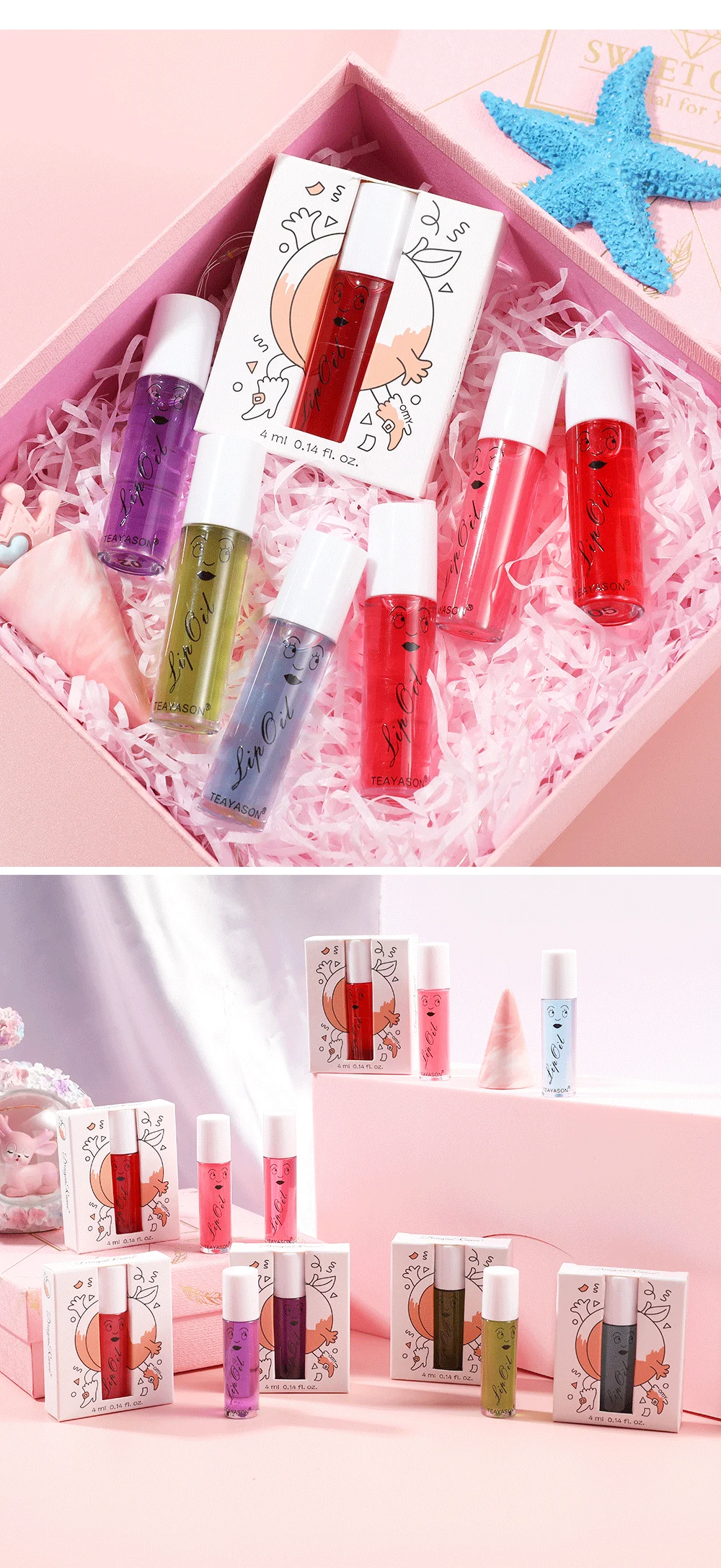 Очень милое и свежее масло для губ с ароматом фруктов, разные цвета соответствуют различным фруктовым ароматам!