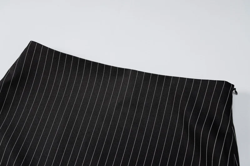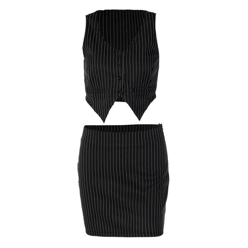 Костюм-двойка в черную полоску, жилет, укороченный жилет, модный универсальный костюм с короткой юбкой, Женская Повседневная Уличная одежда, офисная одежда