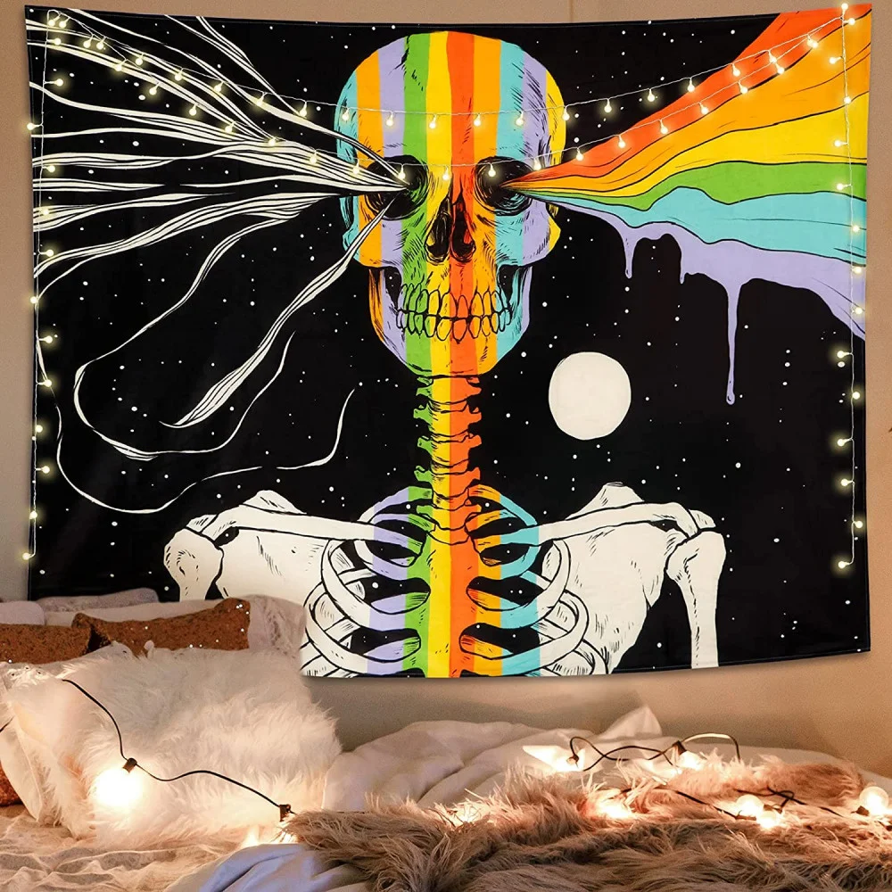 Радужный череп, искусственная кожа, настенное украшение, эстетическое оформление комнаты, гадания для дома