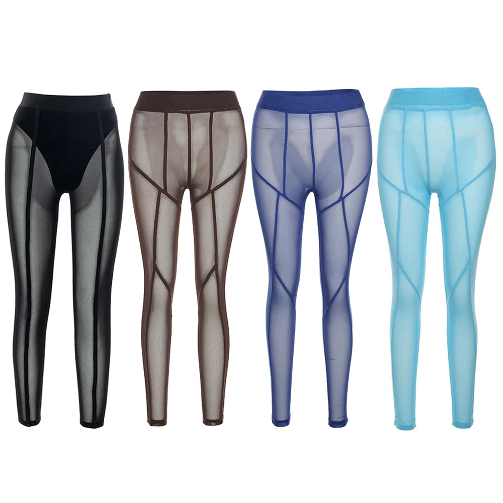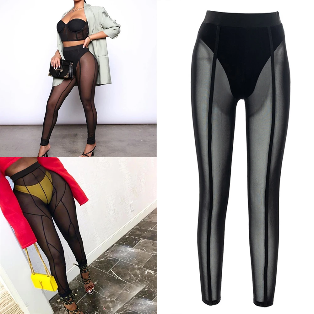 Сетчатые прозрачные женские брюки vetement femme 2022 обтягивающие брюки в стиле пэчворк с высокой талией