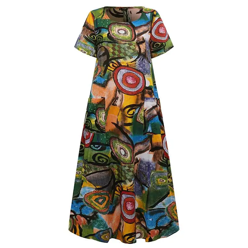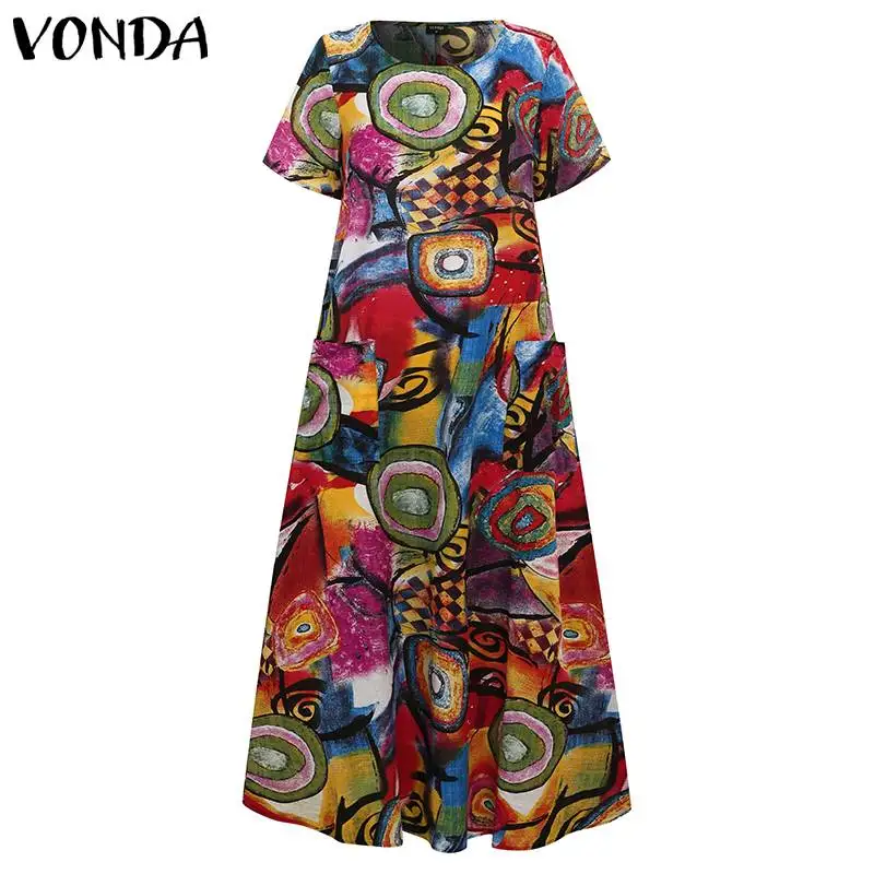 Женское богемное платье VONDA 2022, Длинный летний сарафан с принтом, повседневные платья с коротким рукавом, женское платье с рисунком, модель 5XL