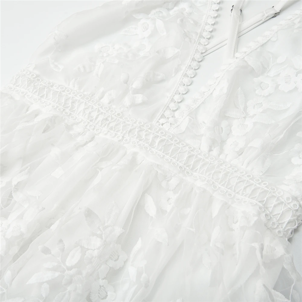 Летние белые платья с цветочной вышивкой, Сетчатое кружевное пляжно...