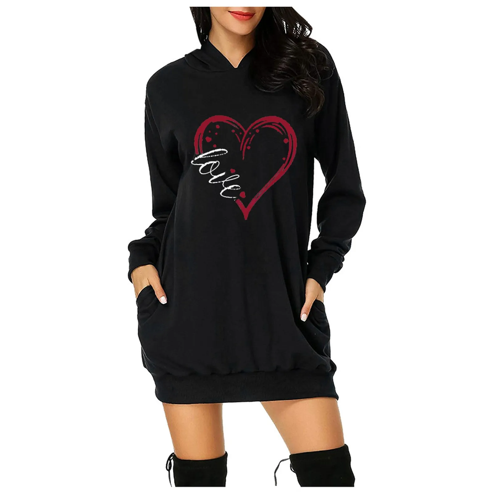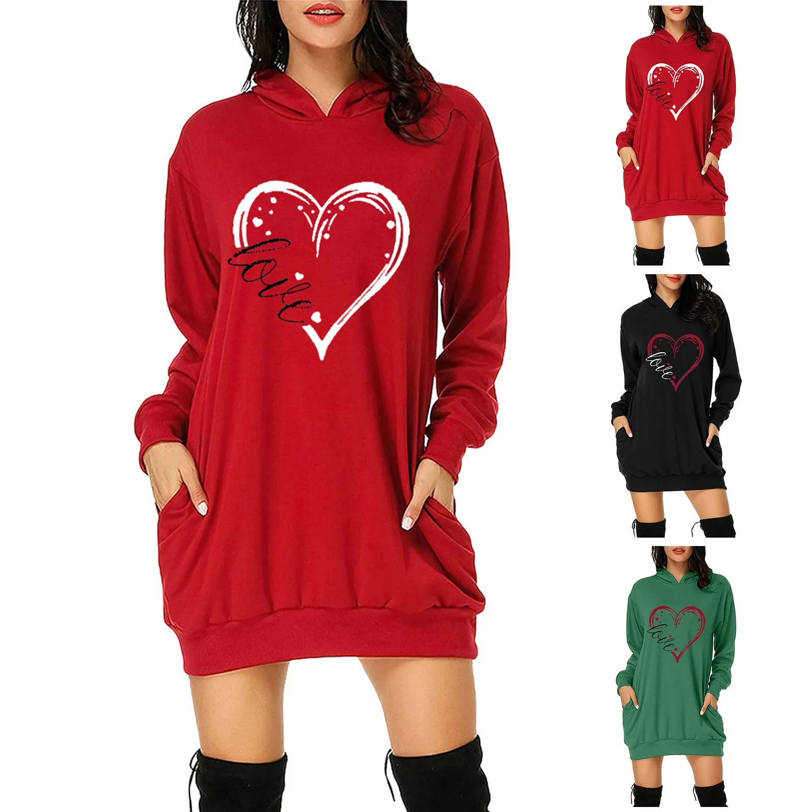 Женское платье-свитер с капюшоном и длинными рукавами на День святого Валентина