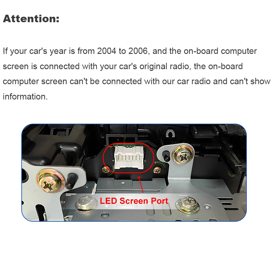 1. Если ваш оригинальный светодиодный экран имеет тот же порт, что и на картинке, он не сможет подключиться после установки junsun radio 2. Пожалуйста, выберите тип A/B в соответствии с годом вашего автомобиля. 3. Некоторые модели Mazda не поддерживают бортовые компьютеры. Поскольку некоторые клиенты сообщают об использовании нашего радио, их бортовой компьютер также может отображать его. Мы не можем гарантировать, что все модели Mazda поддерживаются, пожалуйста, не покупайте, если вы возражаете.