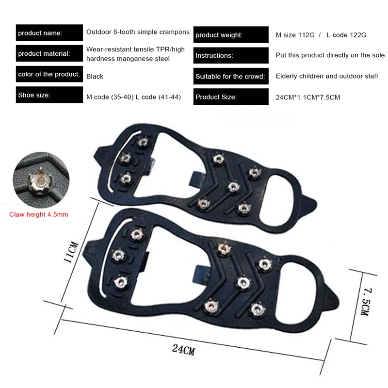 1 пара Нескользящие шипы для захвата льда с 8 зубьями зимние альпинистские Нескользящие шипы для снега зажимы на обувь Чехлы металлические кошки