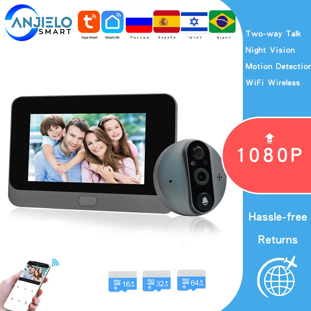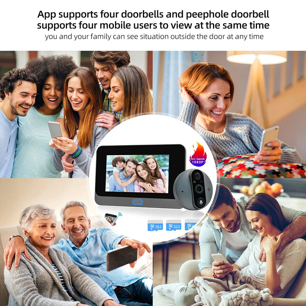 Устройство поддерживает операционные системы Android и IOS. Дверной звонок кошачий глаз поддерживает 4 пользователей мобильных приложений одновременно, позволяя вам и членам вашей семьи в любое время видеть ситуацию на открытом воздухе.