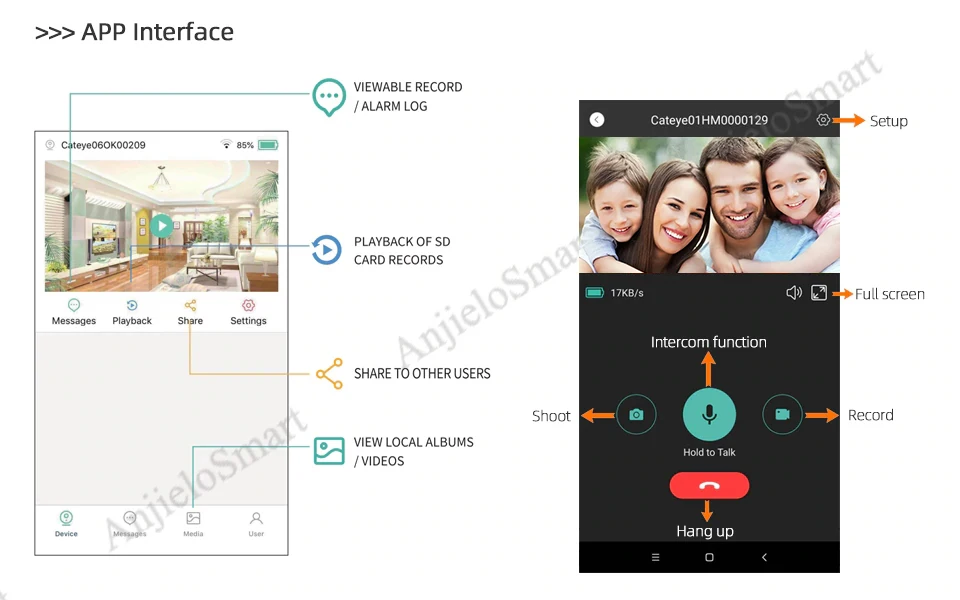 1. Возьмите свой телефон в любое время, чтобы следить за окружающей средой на открытом воздухе2. Когда курьер доставлен к двери, он может позвонить в дверной звонок, чтобы поговорить с вами, в это время, вы можете поговорить удаленно с мобильный телефон.