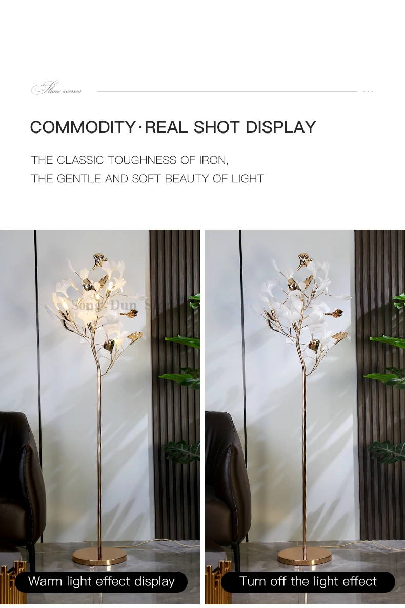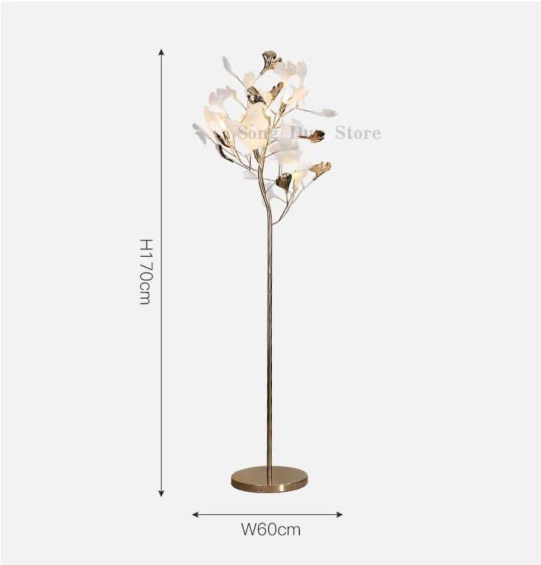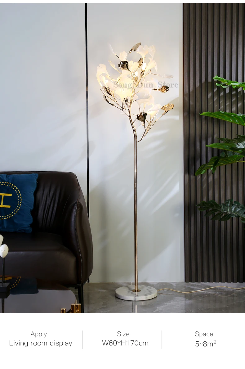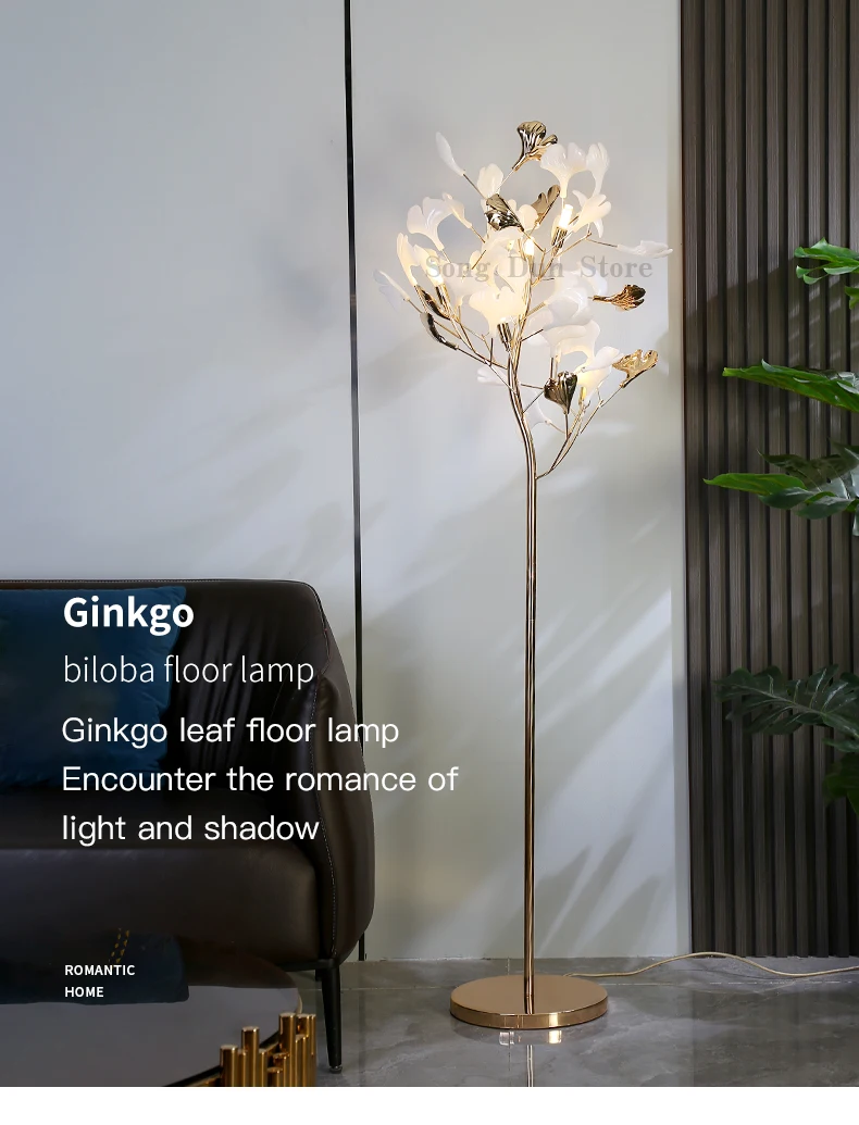Напольный светильник с диваном, роскошная вертикальная лампа в стиле постмодерн для виллы, гостиной, в виде листьев гинкго, для отелей, клубов