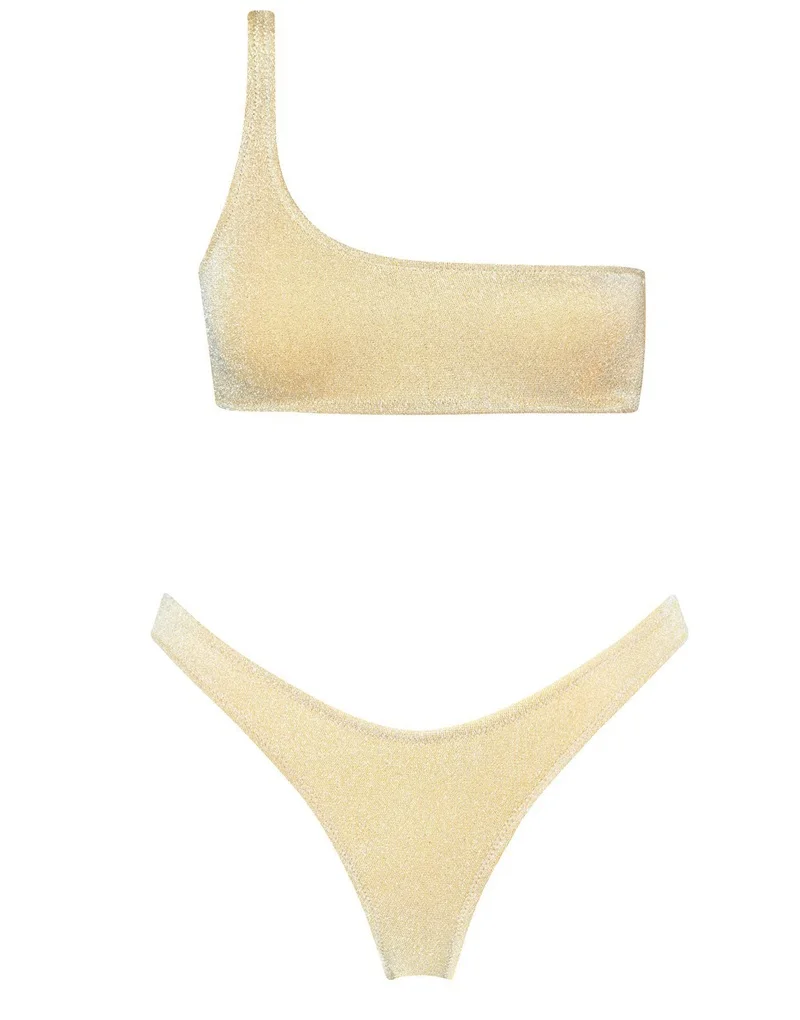 Бикини на одно плечо Rinabe, однотонный Блестящий купальник, женский купальник пуш-ап, сексуальный купальный костюм с высоким вырезом, комплект бикини 2022, пляжная одежда
