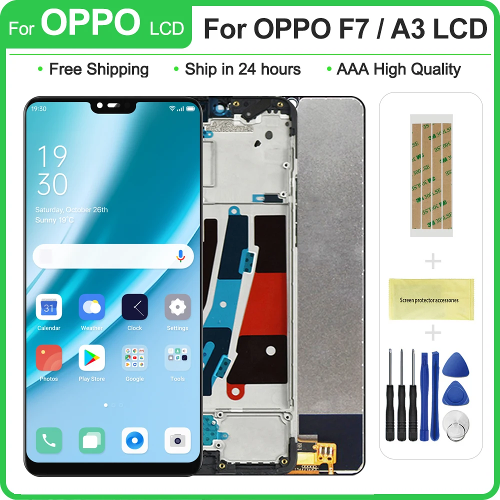 6,23 "Оригинальный ЖК-дисплей для OPPO A3 CPH1819 CPH1821 кодирующий преобразователь сенсорного экрана в сборе Замена с рамкой для OPPO F7 LCD