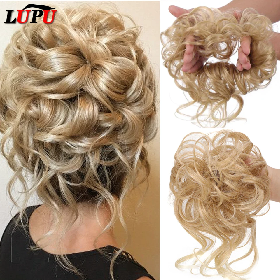 LUPU синтетические волосы пучок ленты блонд черный спутанные кудрявые шиньон пончик Updo Scrunchies поддельные волосы для женщин удлинители волос