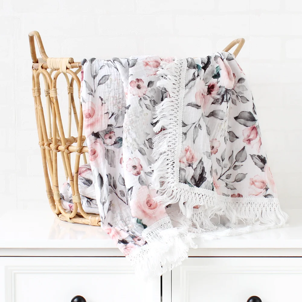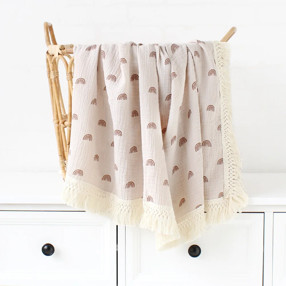 Муслиновое Пеленальное детское одеяло для кровати, плед с кисточкой, детское Пеленальное банное полотенце с принтом бахромы, летнее одеяло