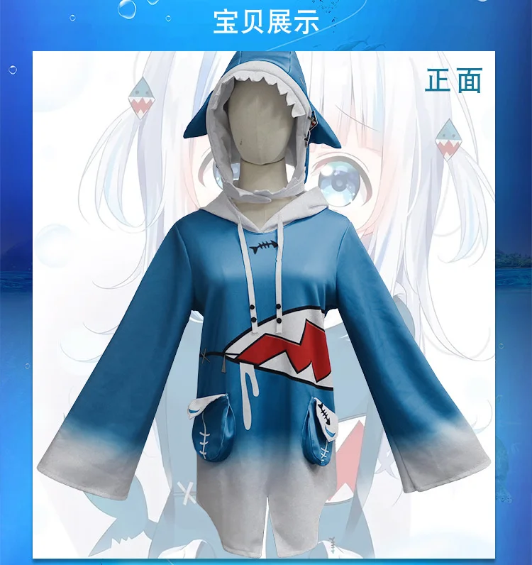 Костюм для косплея Hololive ENG Gawr Gura, шапка акулы, костюм, Ани...