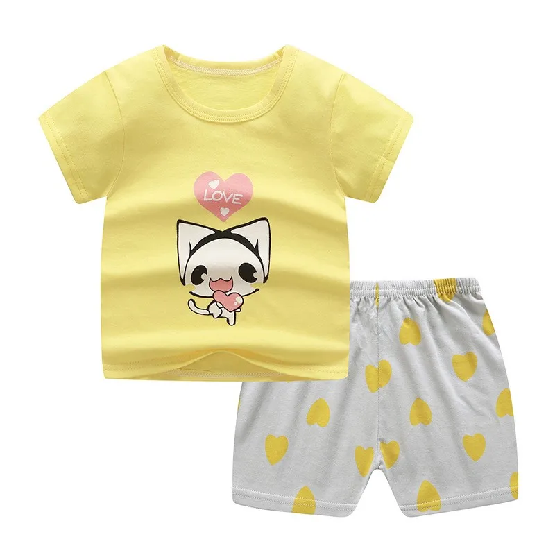 Новый летний хлопковый Детский костюм из двух предметов с коротким ...