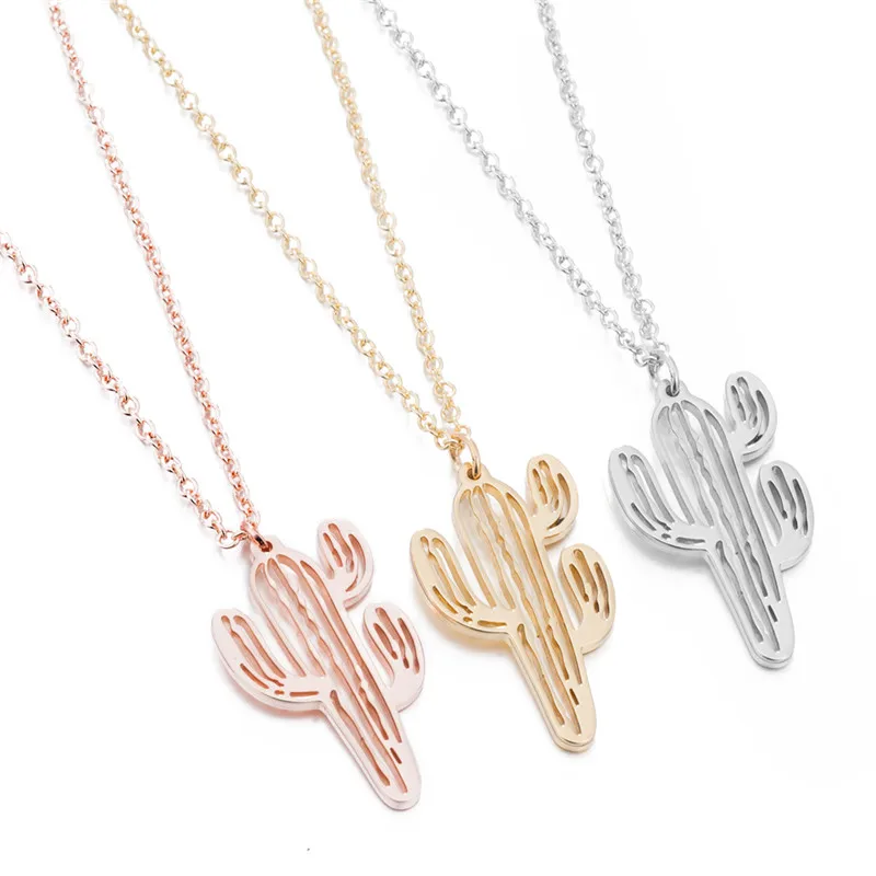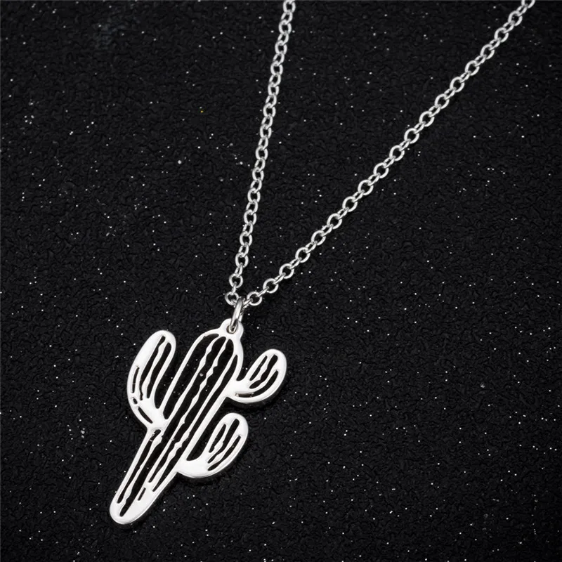Минималистичное ожерелье с подвеской в виде животного для женщин, бижутерия, ожерелье из нержавеющей стали 2021 с китами, горными волнами, кактусами, женское колье