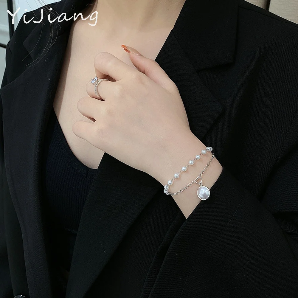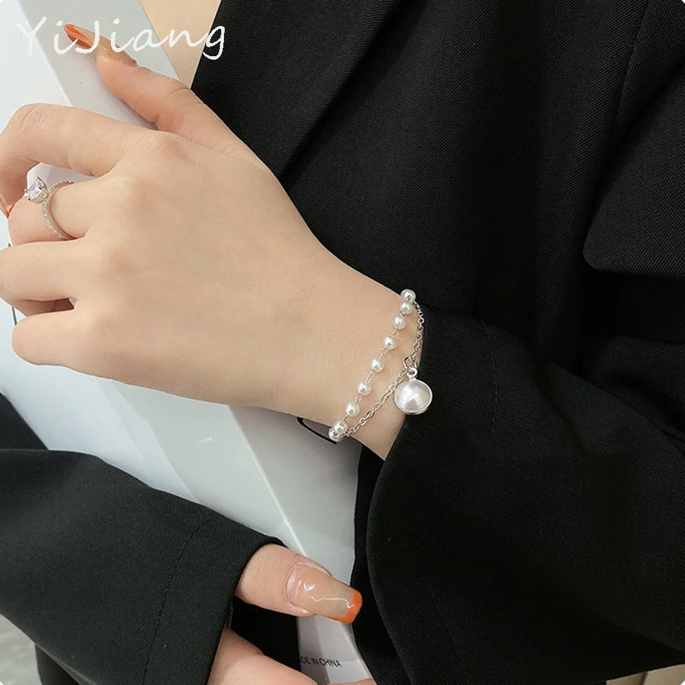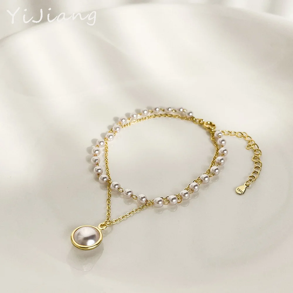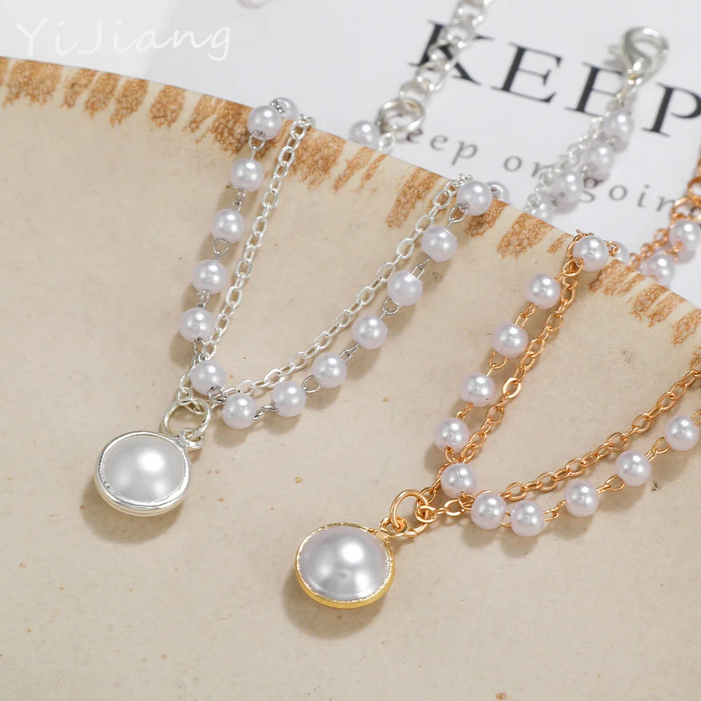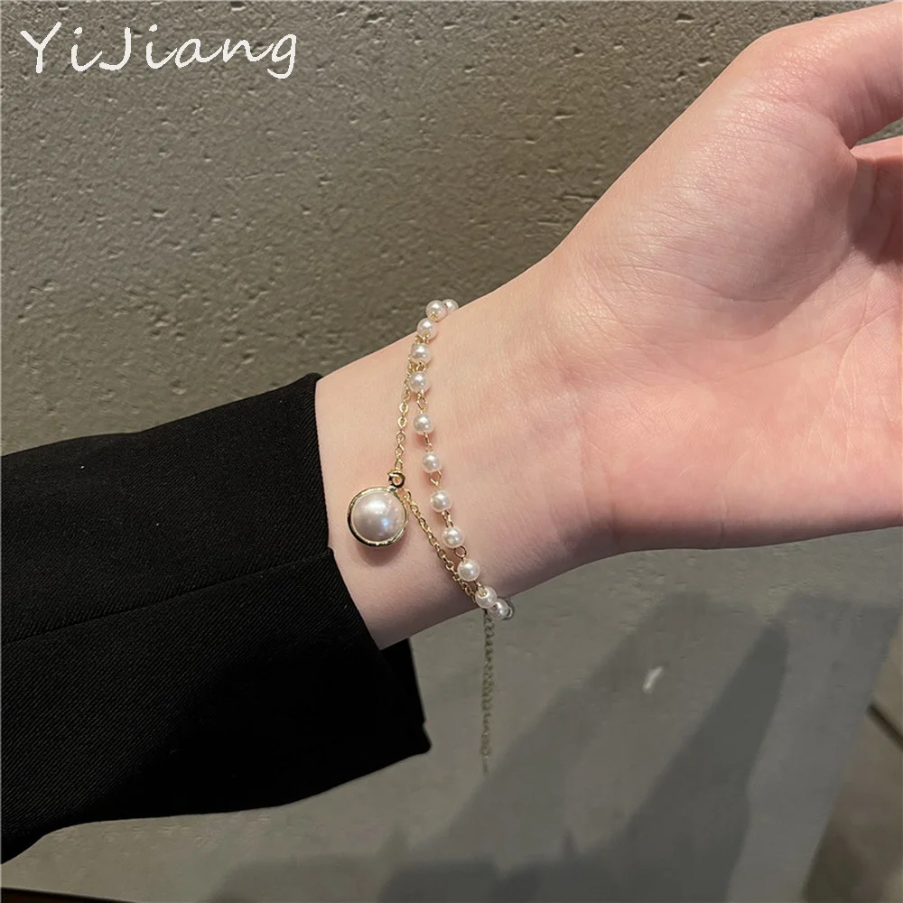 Браслеты Женские двухслойные с жемчугом, простые ювелирные украшения из золотистого жемчуга в Корейском стиле, изящные украшения, 1-2 штуки