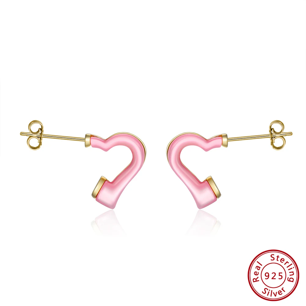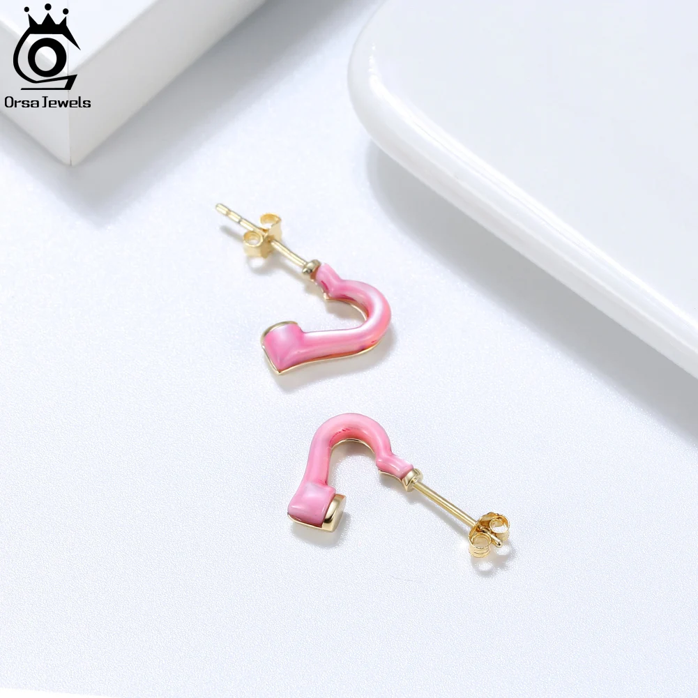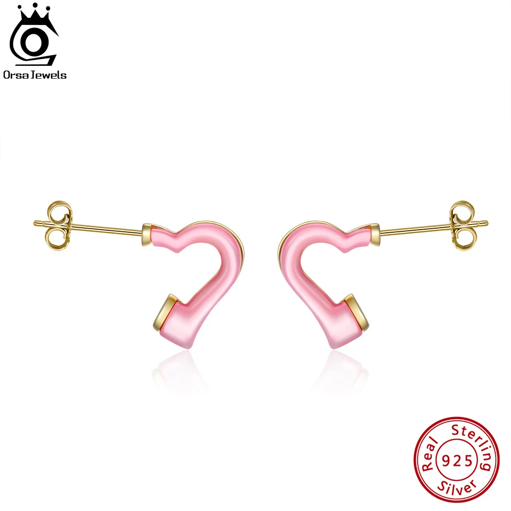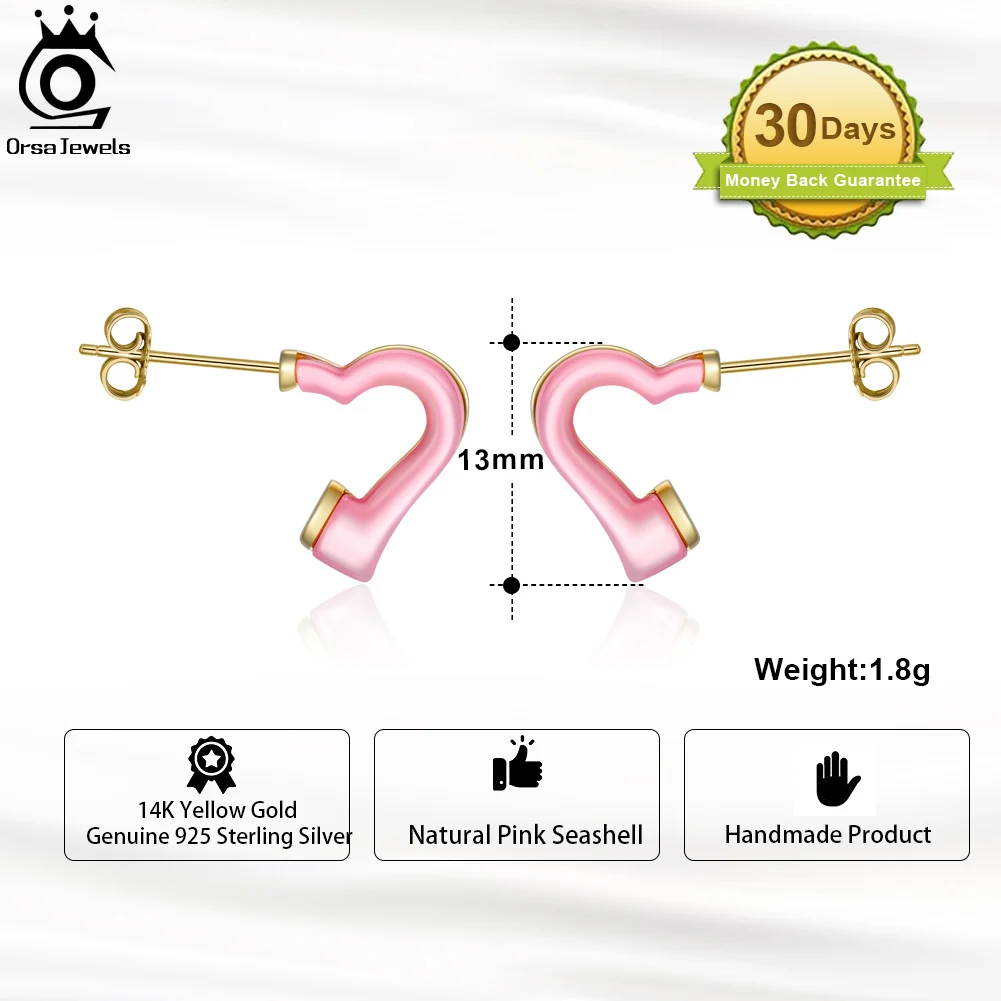 ORSA JEWELS серьги-гвоздики из стерлингового серебра 925 пробы с натуральным розовым ракушкой в форме сердца для женщин и девочек, ювелирные украшения, подарок GME14