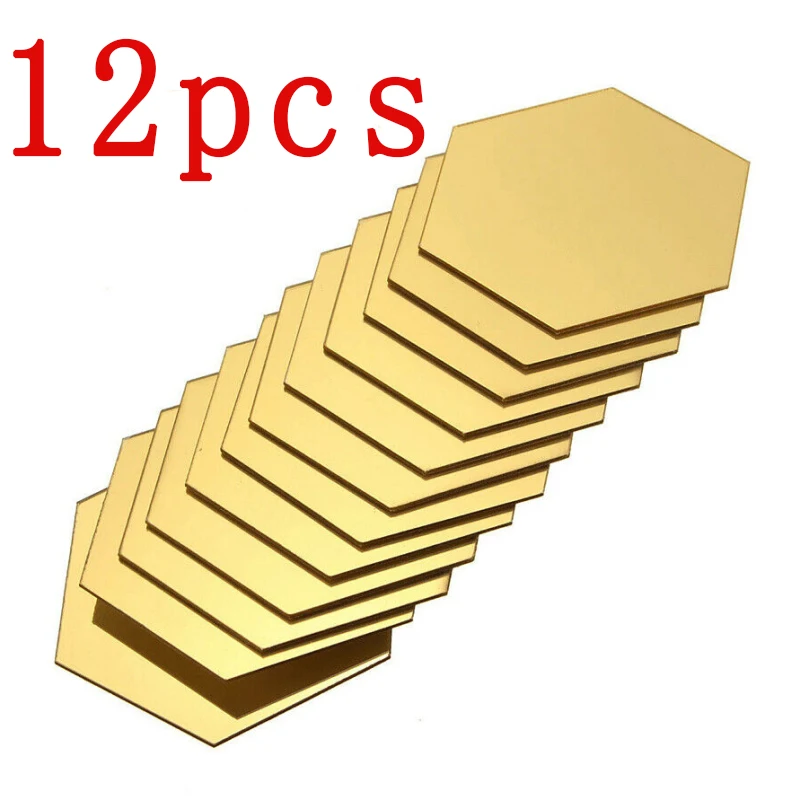 Акриловые зеркальные наклейки на стену, шестиугольные, 12 шт.