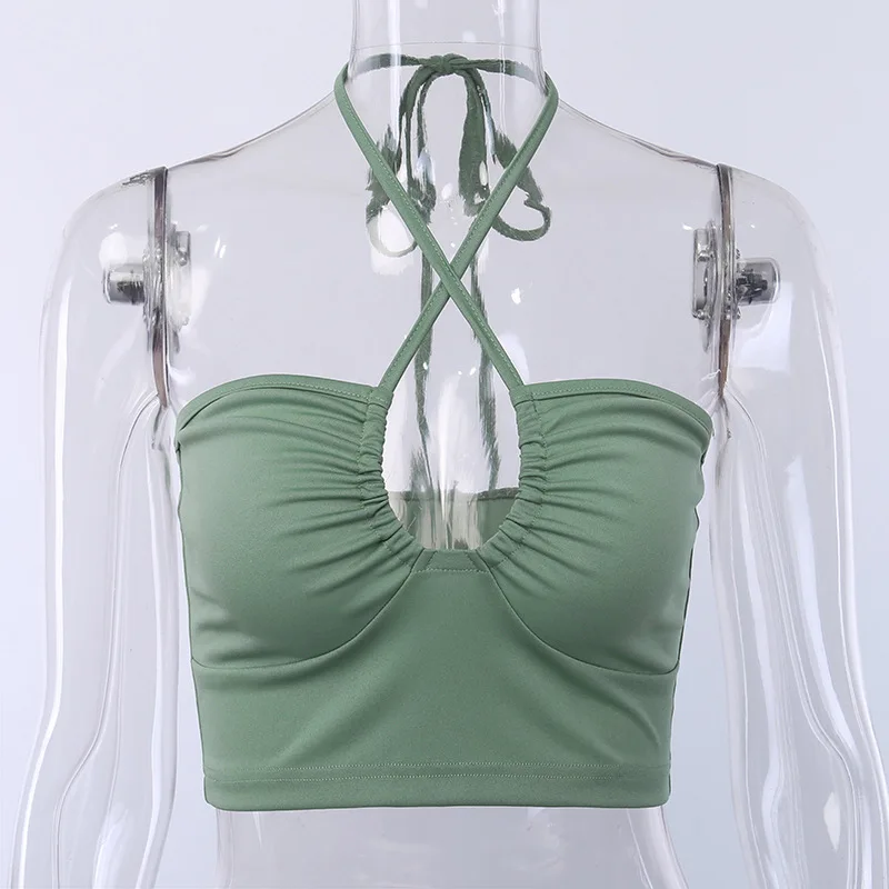 Женский пикантный топ на бретельках 90-х годов Y2K, эстетичный зеленый укороченный жилет без рукавов с V-образным вырезом и открытой спиной, майка для E-girl, топ, одежда