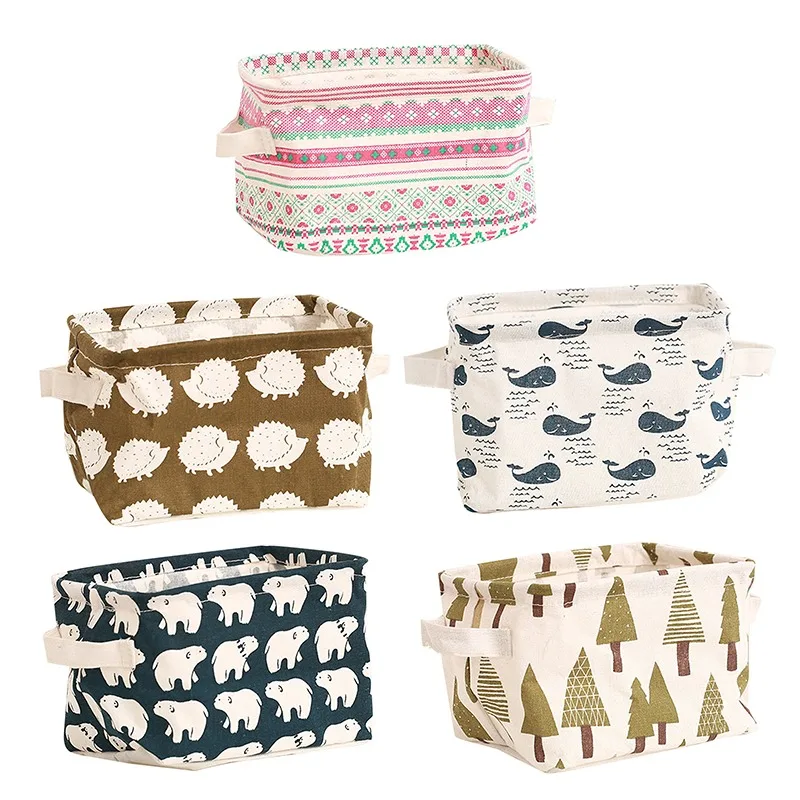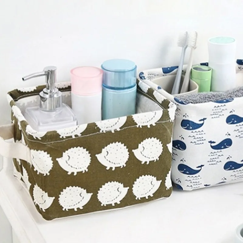 Портативная корзина для хранения, настольный органайзер для хранения косметики, Коробка Для Хранения нижнего белья, льняная Водонепроницаемая корзина для хранения с покрытием