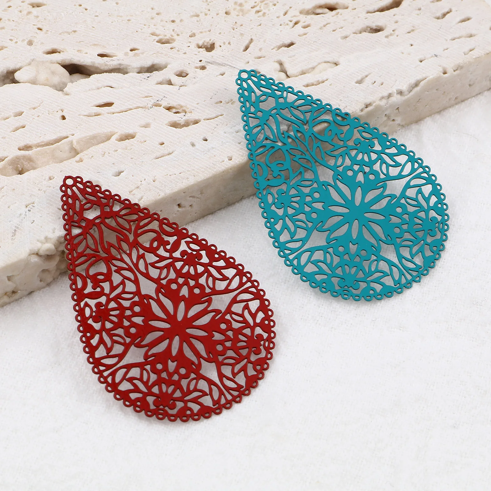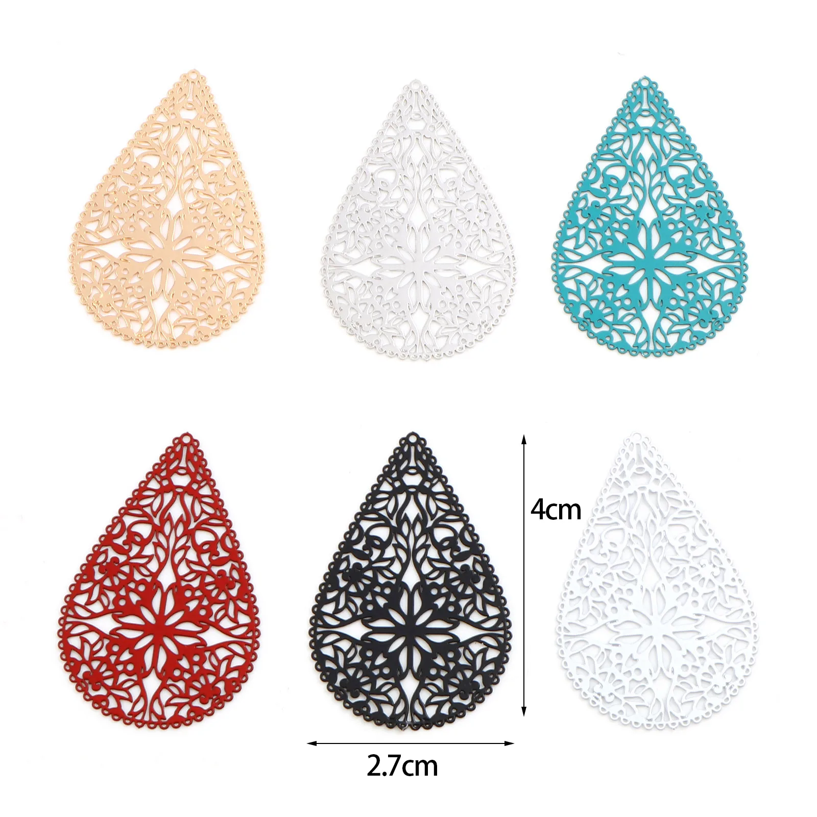 10 шт., цветочное Филигранное тиснение из железного сплава, подвески, полые филигранные подвески для DIY, серьги, ожерелье, ювелирные изделия, 40X27 мм