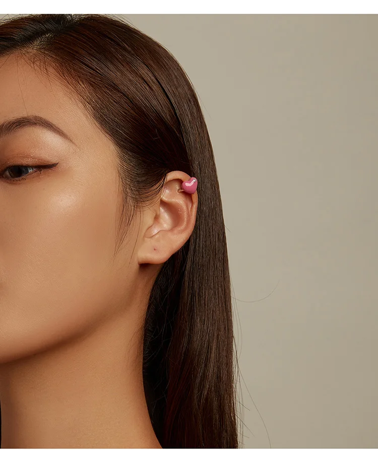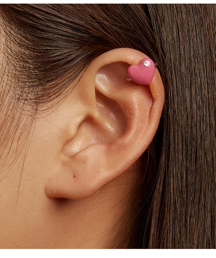 Bamoer, 1 шт., розовое красное сердце, манжета для ушей, подлинный 925 пробы, серебро, розовый, зажим для ушей, для женщин, хорошее ювелирное изделие, подарок на день Святого Валентина