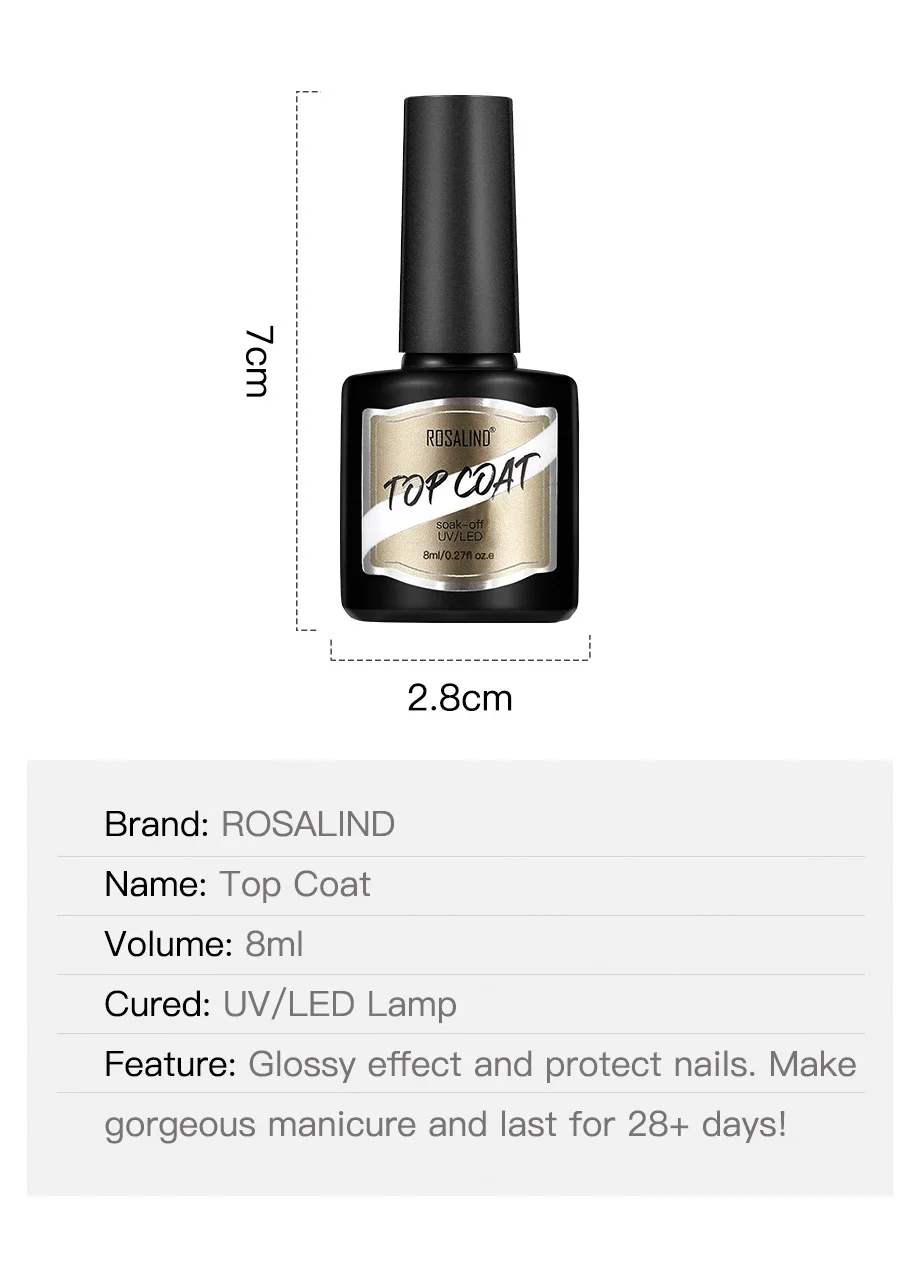 Топовое покрытие ROSALIND, 8 мл, Гель-лак, Блестящий Матовый отмачиваемый лак для маникюра, художественные украшения, верхнее покрытие, УФ-гель