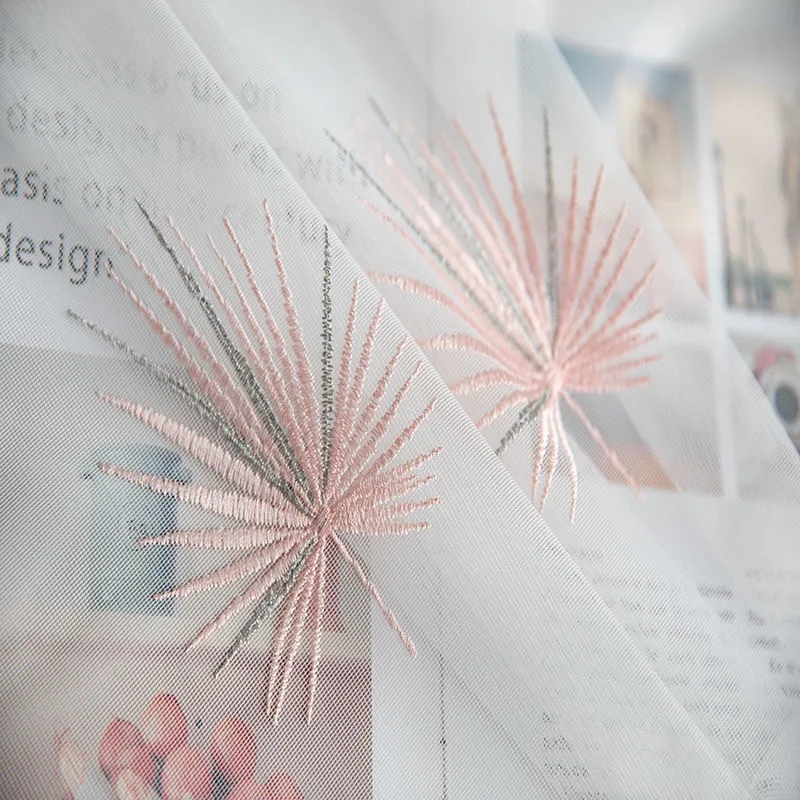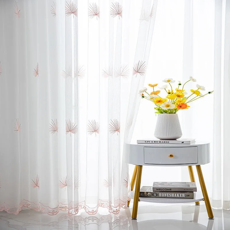 Тюлевые шторы с вышивкой, розовые прозрачные занавески с одуванчико...