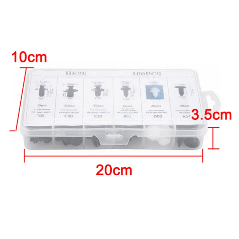 -Набор фиксаторов пуш-типа поставляется с красивой пластиковой коробкой для облегчения выбора типа фиксатора, который вы хотите использовать.
