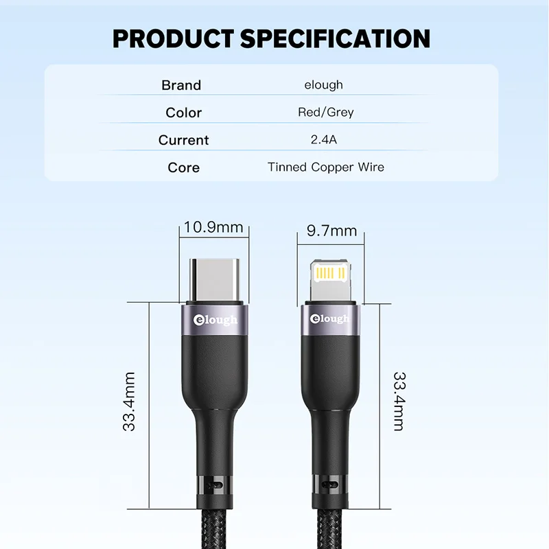 Кабель зарядный Elough с USB Type-C и поддержкой быстрой зарядки, 20 Вт