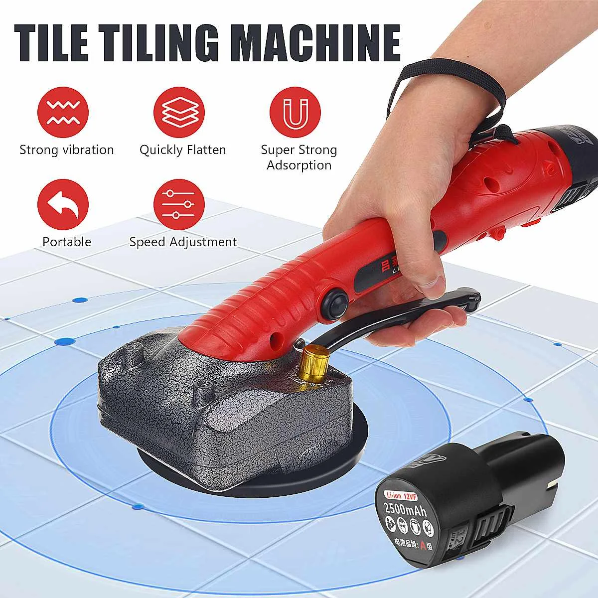 2000 Вт плитка машина для плиточной плитки Вибратор на присоске регулируемый портативный автоматический вибратор для пола инструмент для выравнивания с 12 батареями
