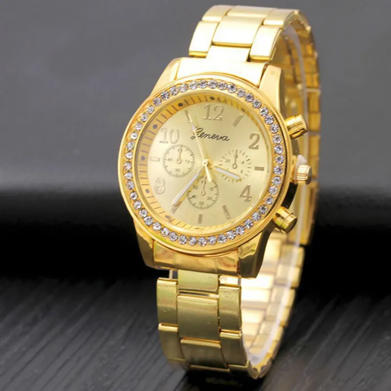 Женева классические роскошные стразы модные женские часы для мужчин...